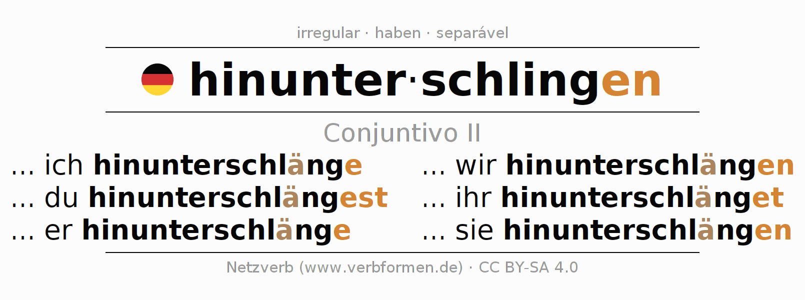 - Como conjugar o verbo hinunterschlingen no Conjuntivo II?