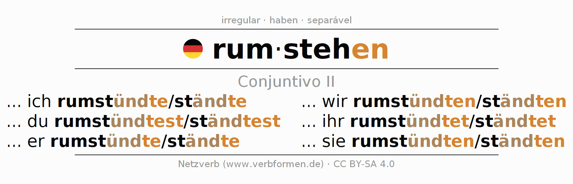 O verbo rumstehen é totalmente conjugado em todas as pessoas e números no Conjuntivo Pretérito