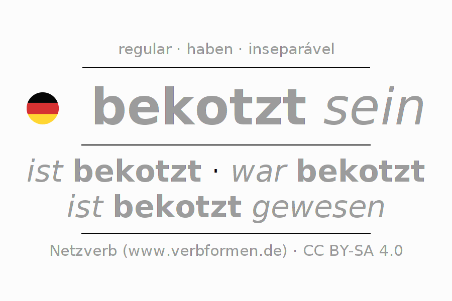 A conjugação do verbo bekotzen no Estado passivo Conjuntivo Pretérito Conjuntivo é: ich wäre bekotzt, du wärest bekotzt, er wäre bekotzt, wir wären bekotzt, ihr wäret bekotzt, sie wären bekotzt.A formação dessas formas segue determinadas regras gramaticais. Os requisitos para a conjugação do verbo como forma verbal simples no bekotzen do Conjuntivo II. Comentários ☆