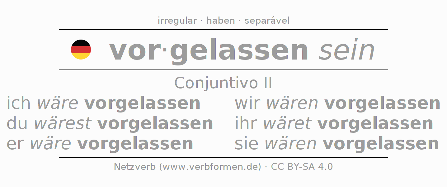 O verbo vorlassen é totalmente conjugado em todas as pessoas e números no Conjuntivo Pretérito