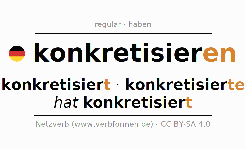 Conjugação simples no presente, pretérito, imperativo e conjuntivo do verbo konkretisieren