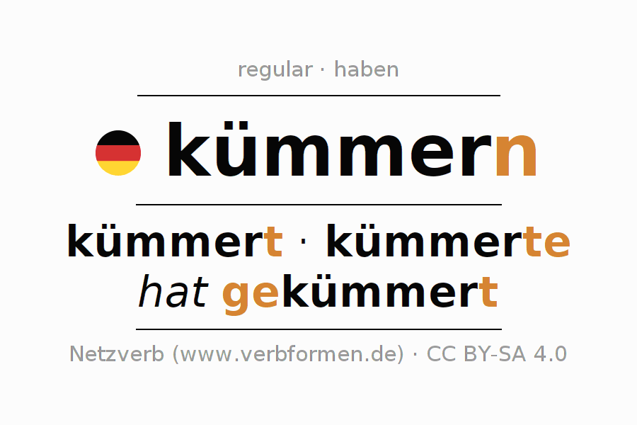 A conjugação do verbo kümmern (cuidar, preocupar) é regular. As formas mais comuns são kümmert, kümmerte e hat gekümmert. O verbo auxilar para kümmern é "haben".