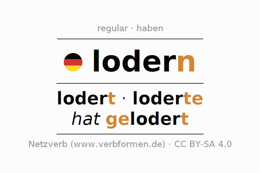 A conjugação do verbo lodern (flamejar, arder) é regular. As formas mais comuns são lodert, loderte e hat gelodert. O verbo auxilar para lodern é "haben". No entanto, há formas verbais com o verbo auxiliar " sein".