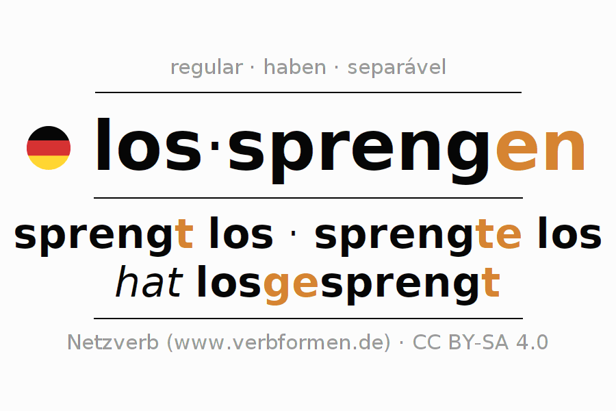 A conjugação do verbo lossprengen (desprender, explodir) é regular. As formas mais comuns são sprengt los, sprengte los e hat losgesprengt. O verbo auxilar para lossprengen é "haben". No entanto, há formas verbais com o verbo auxiliar " sein".
