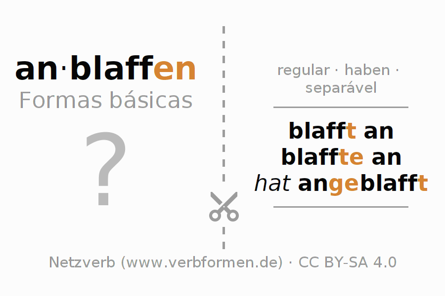 A Tabela de verbo resume todas as formas verbais do verbo anblaffen em uma só tabela.