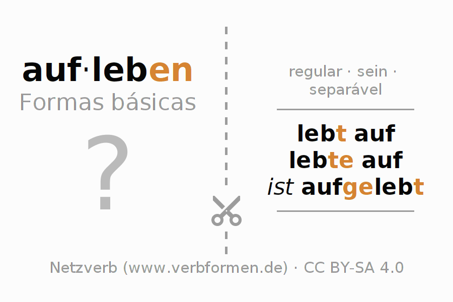 A Tabela de verbo resume todas as formas verbais do verbo aufleben em uma só tabela.