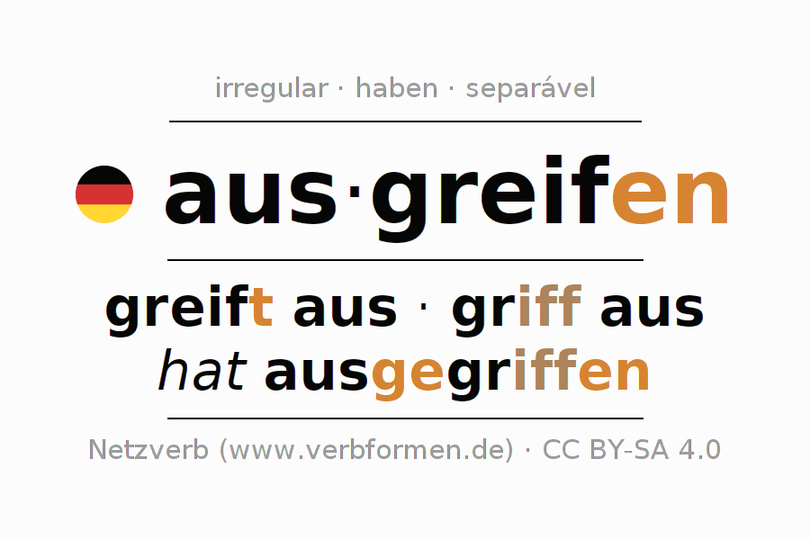 A Tabela de verbo resume todas as formas verbais do verbo ausgreifen em uma só tabela.