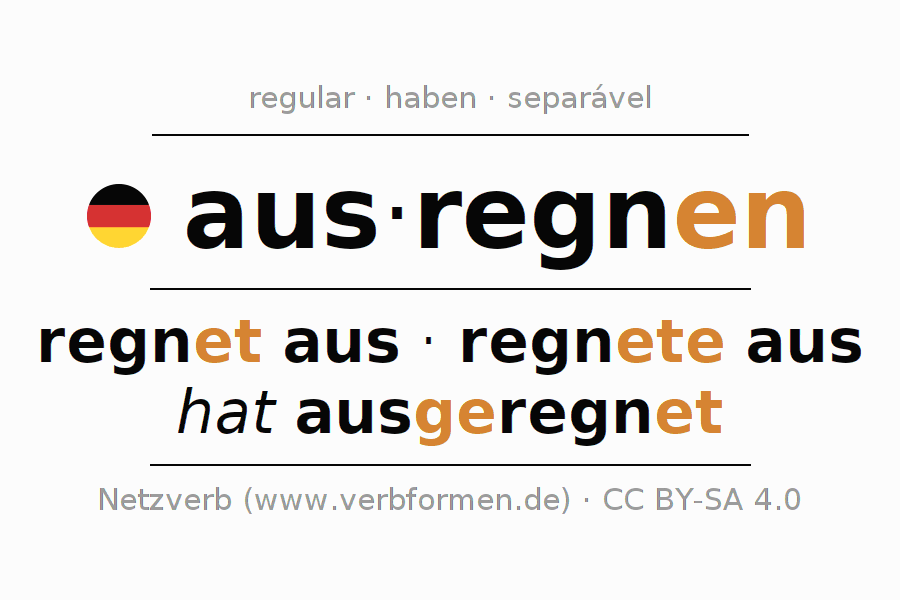A Tabela de verbo resume todas as formas verbais do verbo ausregnen em uma só tabela.