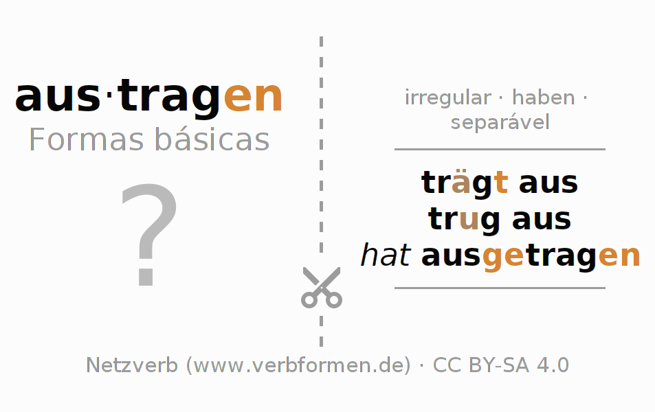 A Tabela de verbo resume todas as formas verbais do verbo austragen em uma só tabela.