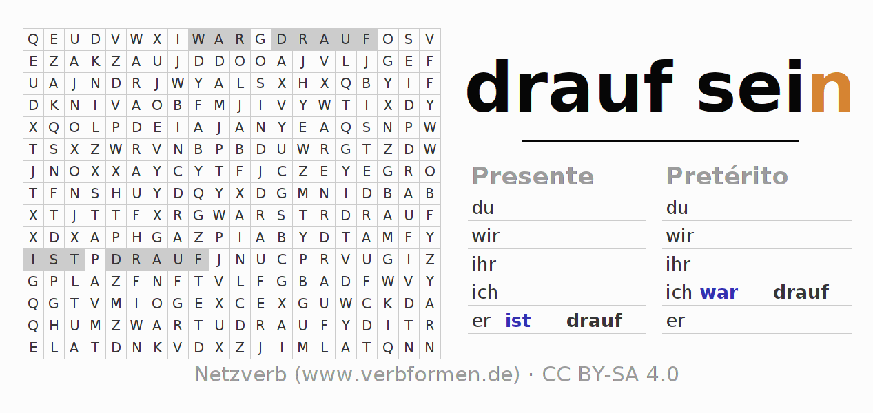 A Tabela de verbo resume todas as formas verbais do verbo draufsein em uma só tabela.