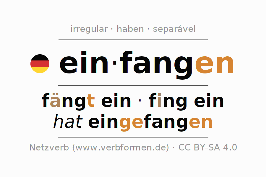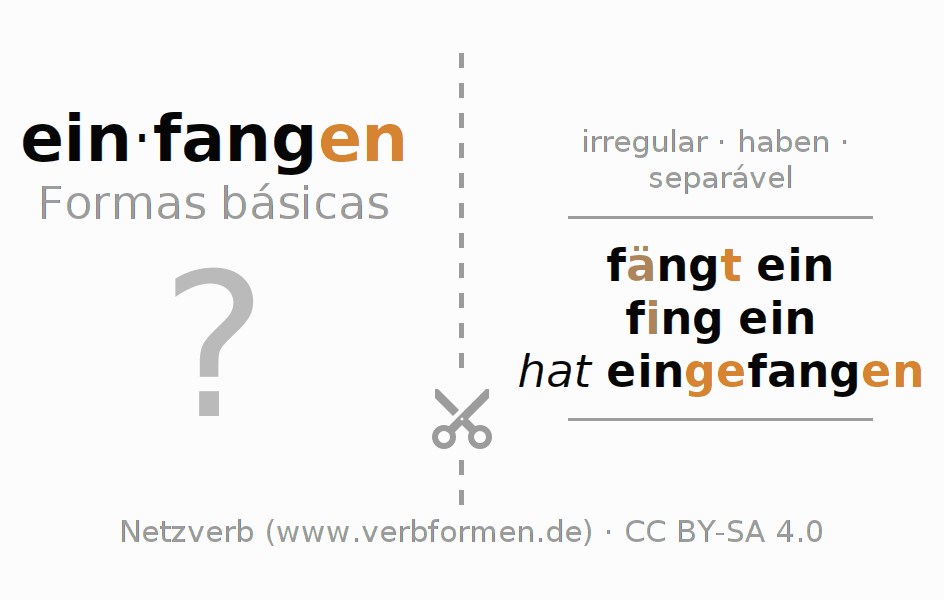 A Tabela de verbo resume todas as formas verbais do verbo einfangen em uma só tabela.
