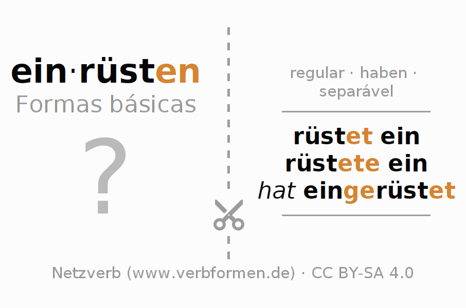 Tabela de conjugação para todas as formas verbais do verbo einrüsten