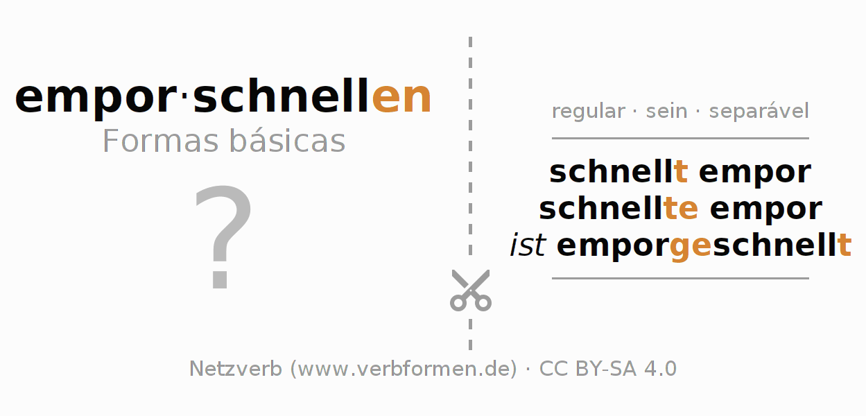 A Tabela de verbo resume todas as formas verbais do verbo emporschnellen em uma só tabela.