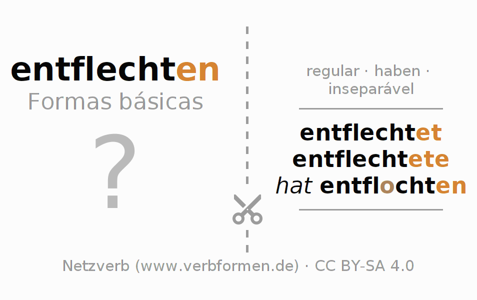 A Tabela de verbo resume todas as formas verbais do verbo entflechten em uma só tabela.
