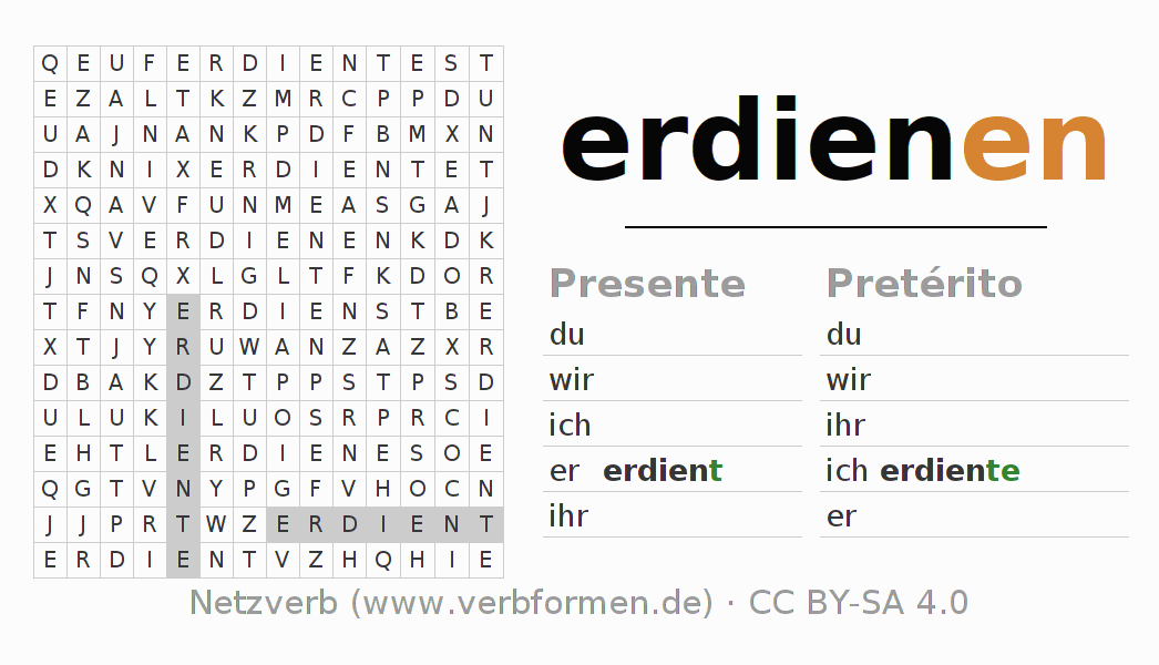 Caça-palavras para todas as formas do verbo erdienen