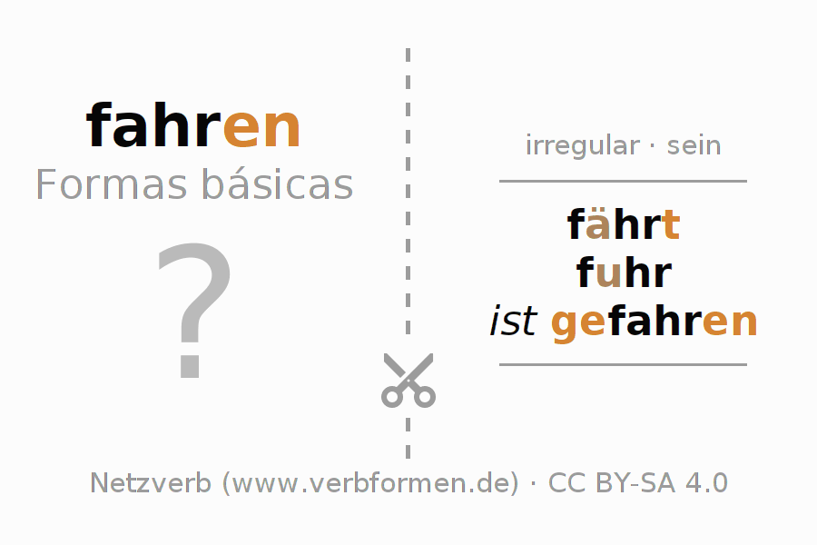 A Tabela de verbo resume todas as formas verbais do verbo fahren em uma só tabela.