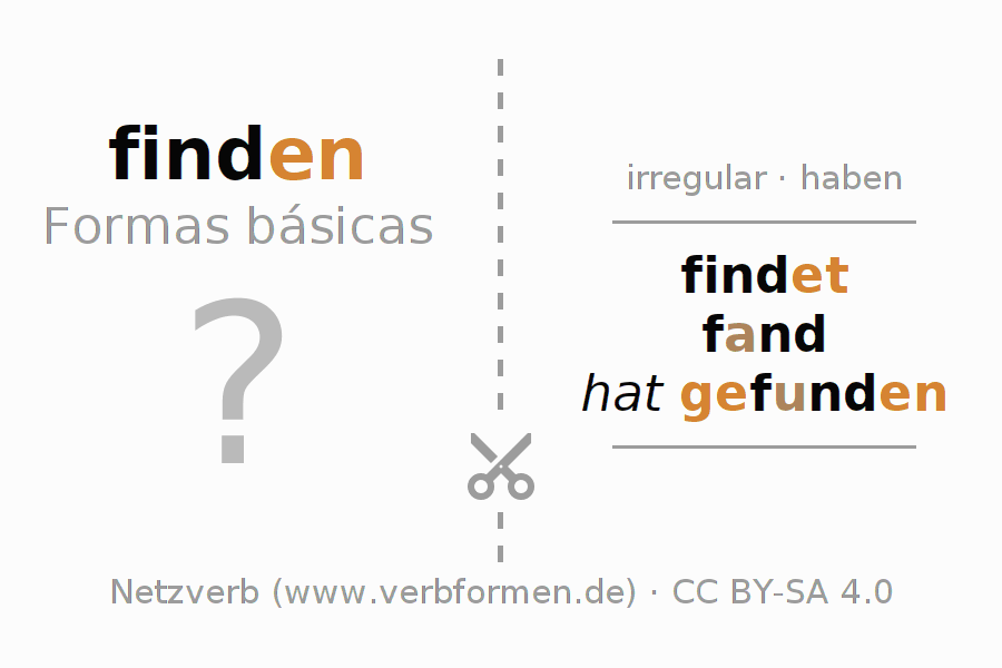 A Tabela de verbo resume todas as formas verbais do verbo finden em uma só tabela.