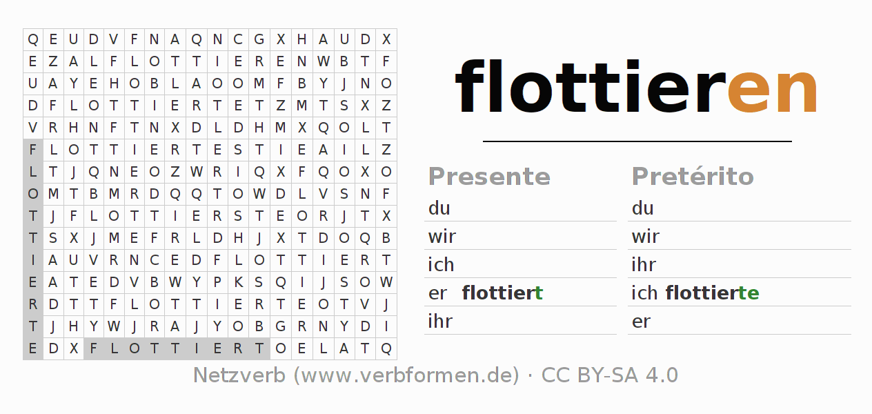 Caça-palavras para todas as formas do verbo flottieren