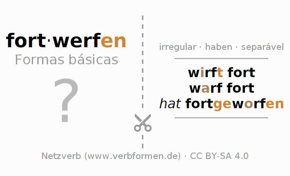 A Tabela de verbo resume todas as formas verbais do verbo fortwerfen em uma só tabela.