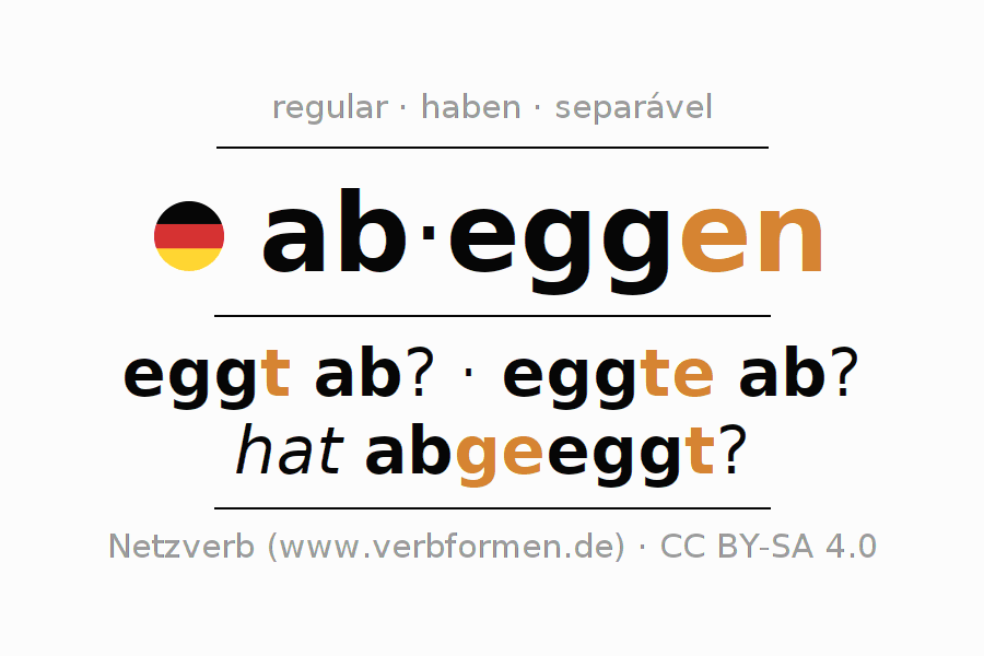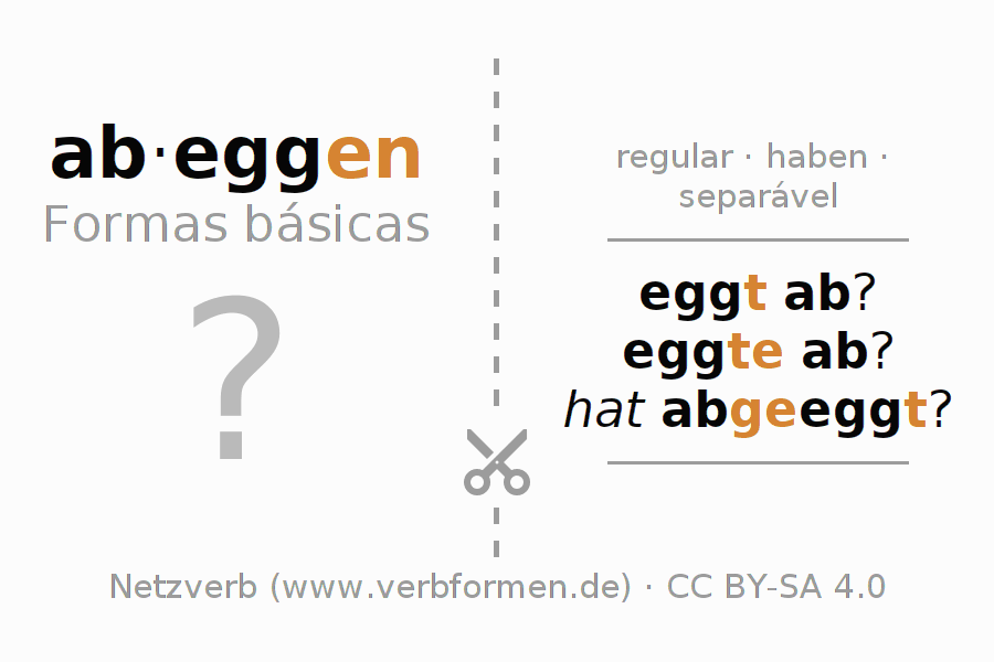 A Tabela de verbo resume todas as formas verbais do verbo abeggen em uma só tabela.