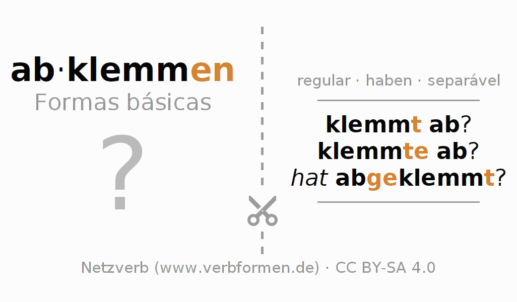 A Tabela de verbo resume todas as formas verbais do verbo abklemmen em uma só tabela.