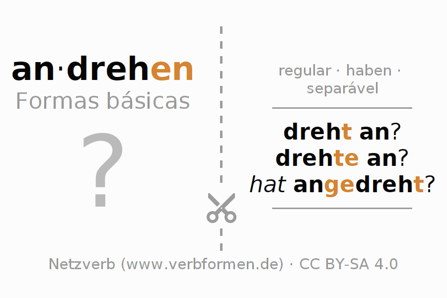 A Tabela de verbo resume todas as formas verbais do verbo andrehen em uma só tabela.