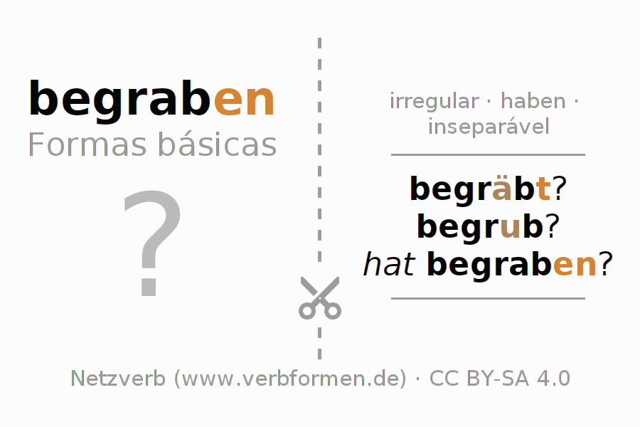 A Tabela de verbo resume todas as formas verbais do verbo begraben em uma só tabela.