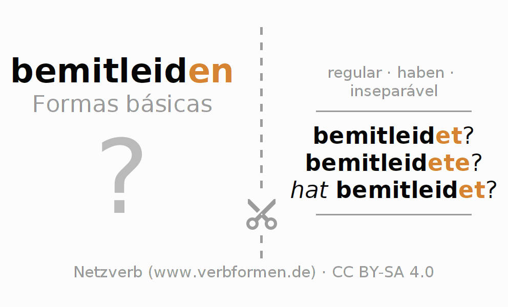A Tabela de verbo resume todas as formas verbais do verbo bemitleiden em uma só tabela.
