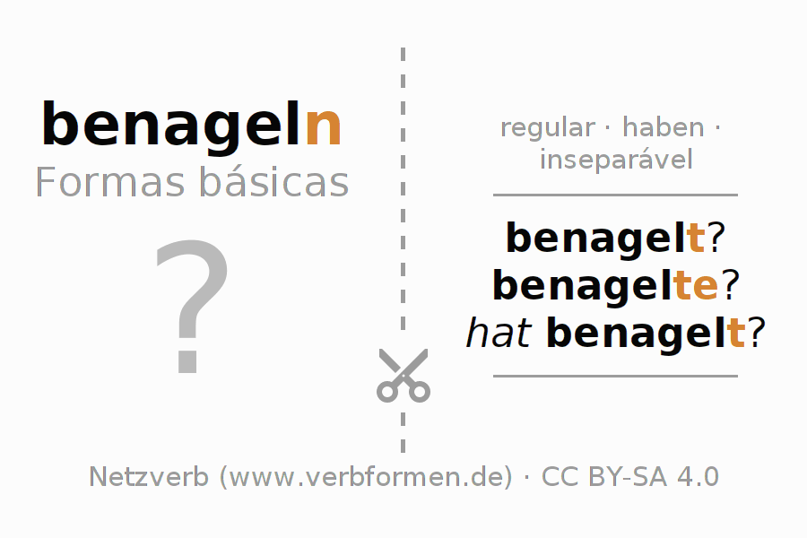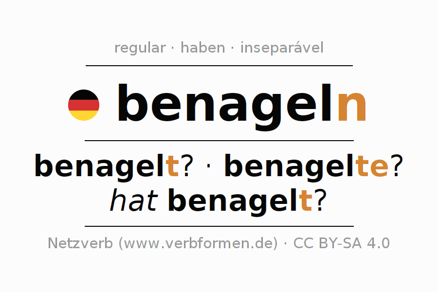 A Tabela de verbo resume todas as formas verbais do verbo benageln em uma só tabela.