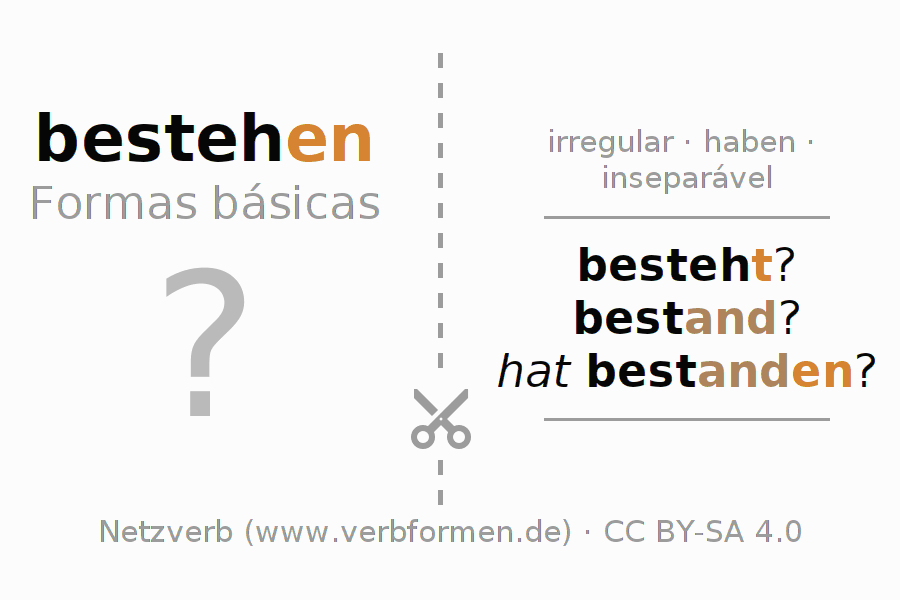 A Tabela de verbo resume todas as formas verbais do verbo bestehen em uma só tabela.
