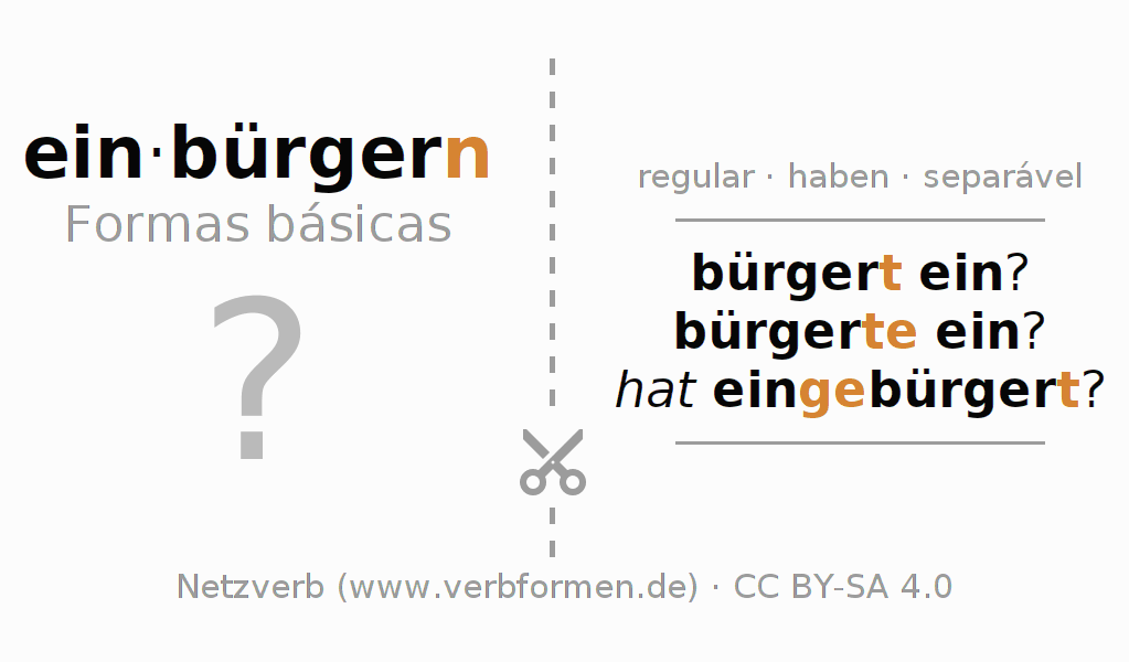 Tabela de conjugação para todas as formas verbais do verbo einbürgern