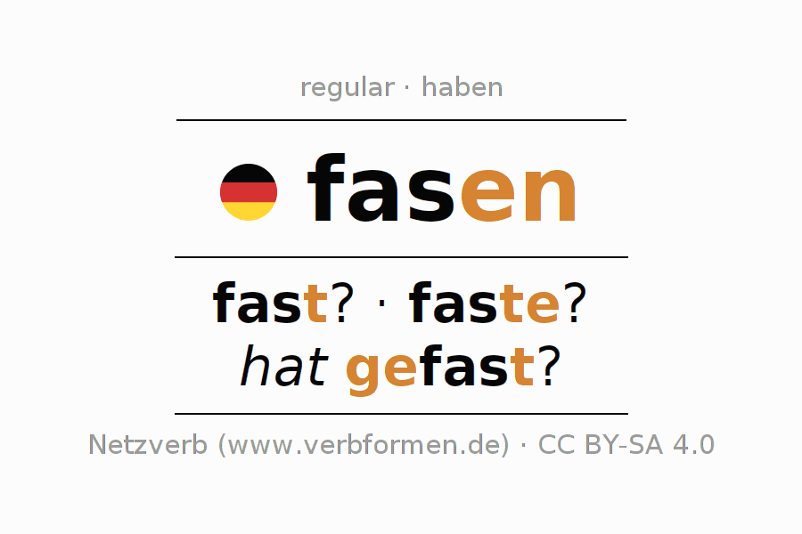 Flashcards, cartões de aprendizagem para todas as formas do verbo fasen