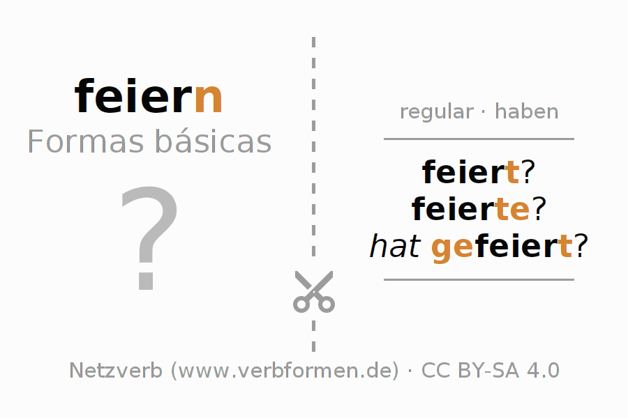 Flashcards, cartões de aprendizagem para todas as formas do verbo feiern