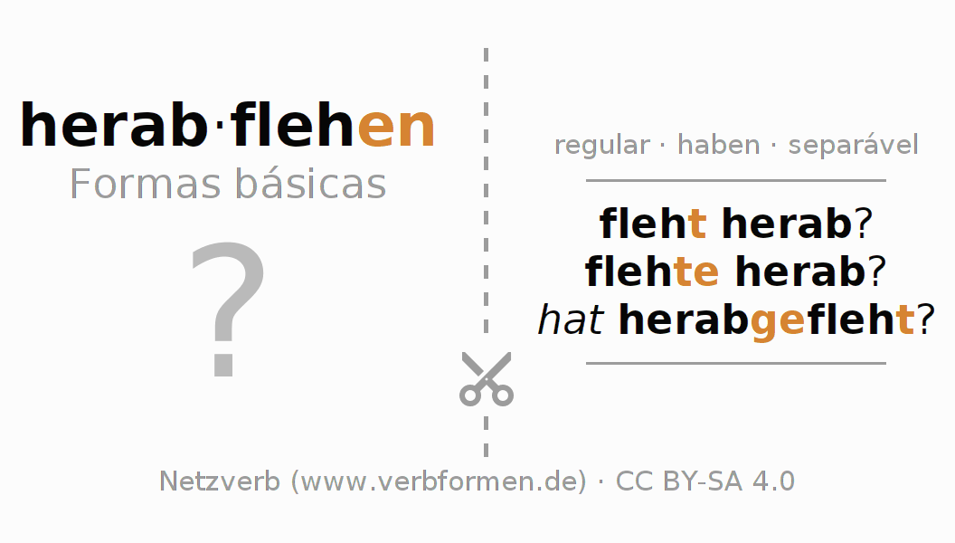 A Tabela de verbo resume todas as formas verbais do verbo herabflehen em uma só tabela.