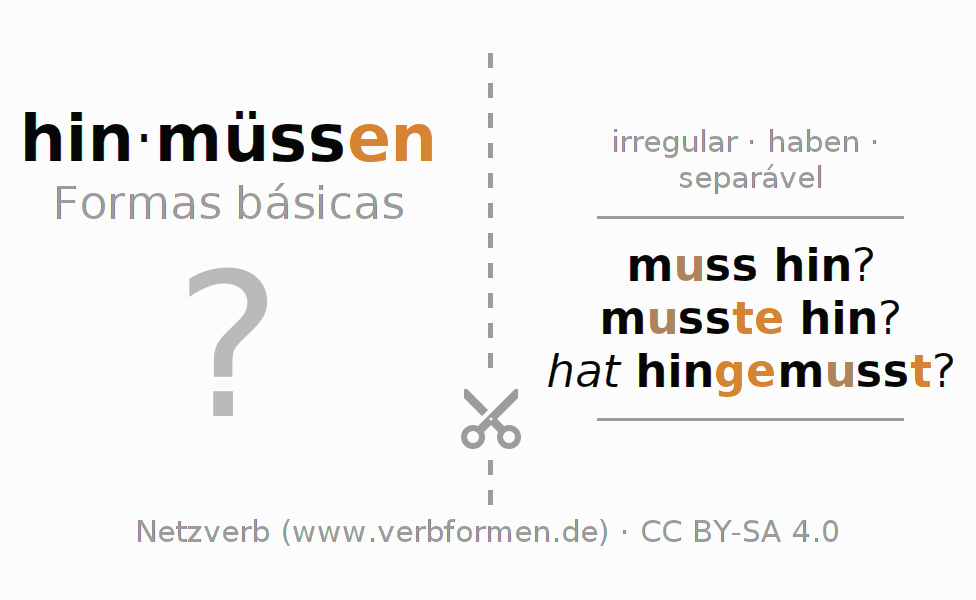 A Tabela de verbo resume todas as formas verbais do verbo hinmüssen em uma só tabela.
