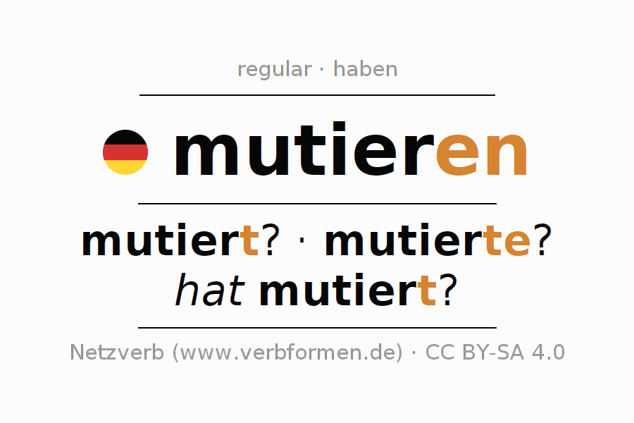 A Tabela de verbo resume todas as formas verbais do verbo mutieren em uma só tabela.