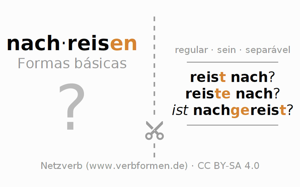 A Tabela de verbo resume todas as formas verbais do verbo nachreisen em uma só tabela.