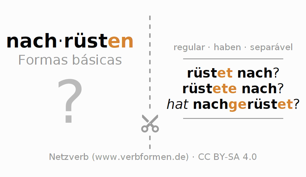 Flashcards, cartões de aprendizagem para todas as formas do verbo nachrüsten