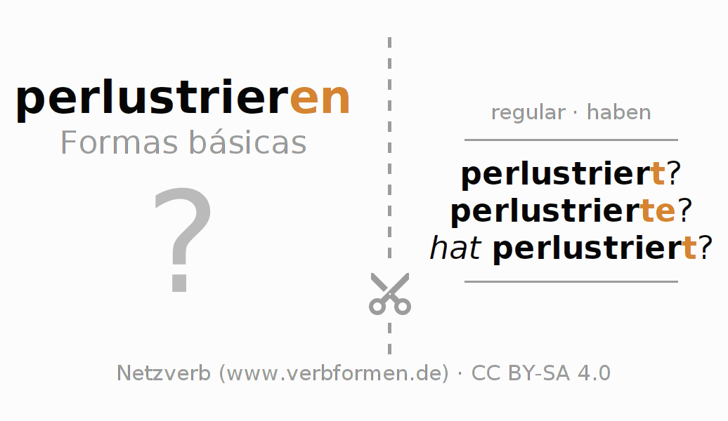 A Tabela de verbo resume todas as formas verbais do verbo perlustrieren em uma só tabela.