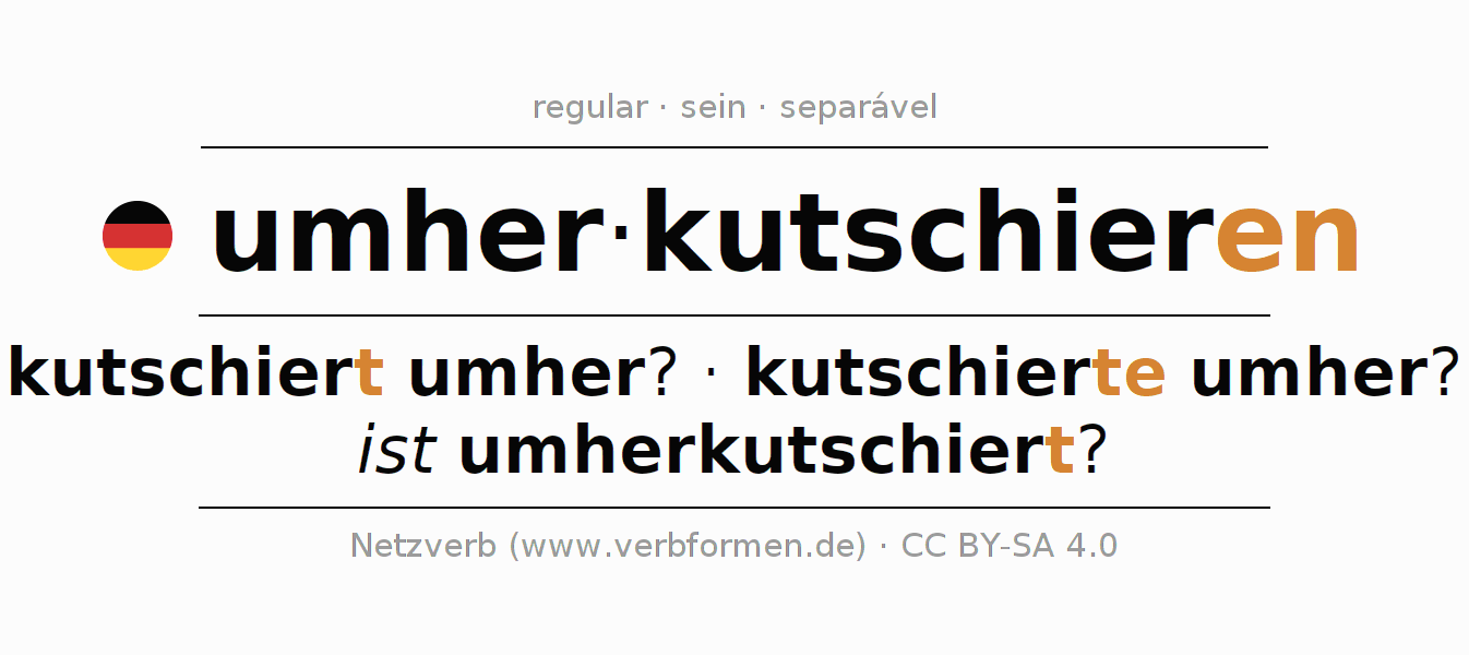 A Tabela de verbo resume todas as formas verbais do verbo umherkutschieren em uma só tabela.