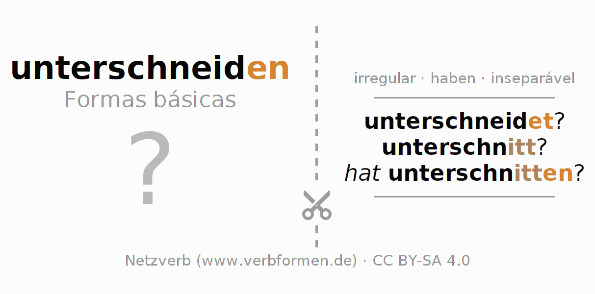 A Tabela de verbo resume todas as formas verbais do verbo unterschneiden em uma só tabela.