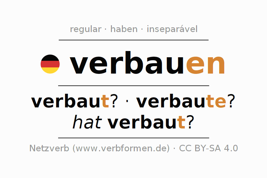 A Tabela de verbo resume todas as formas verbais do verbo verbauen em uma só tabela.