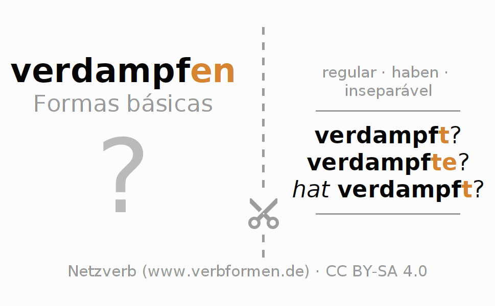 A Tabela de verbo resume todas as formas verbais do verbo verdampfen em uma só tabela.