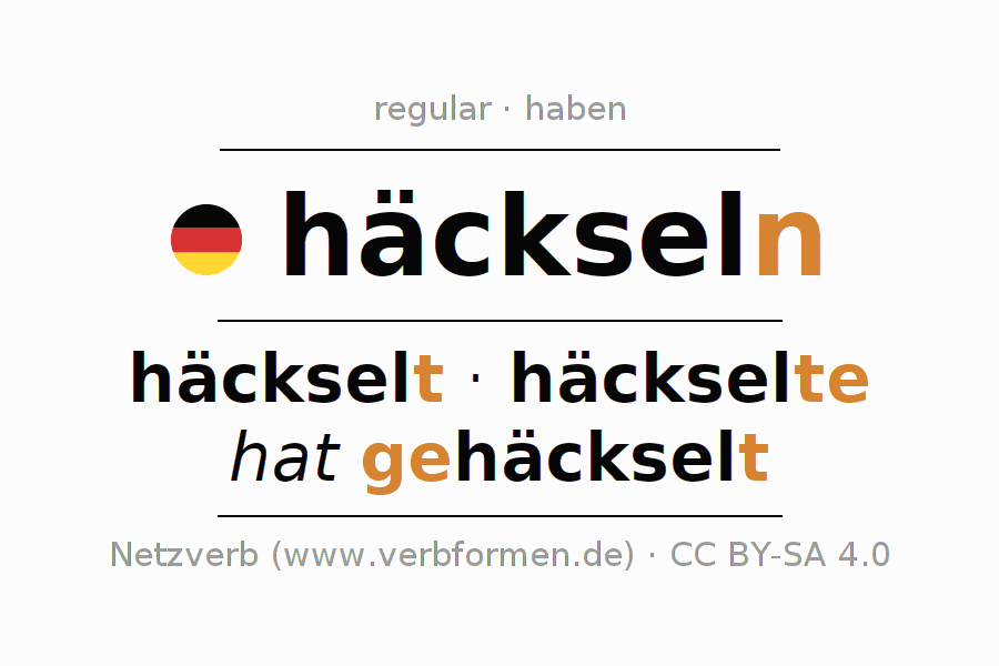 A Tabela de verbo resume todas as formas verbais do verbo häckseln em uma só tabela.