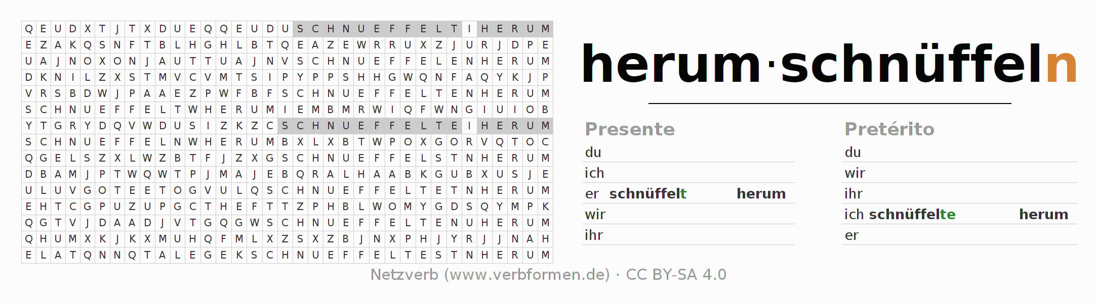 Caça-palavras para todas as formas do verbo herumschnüffeln