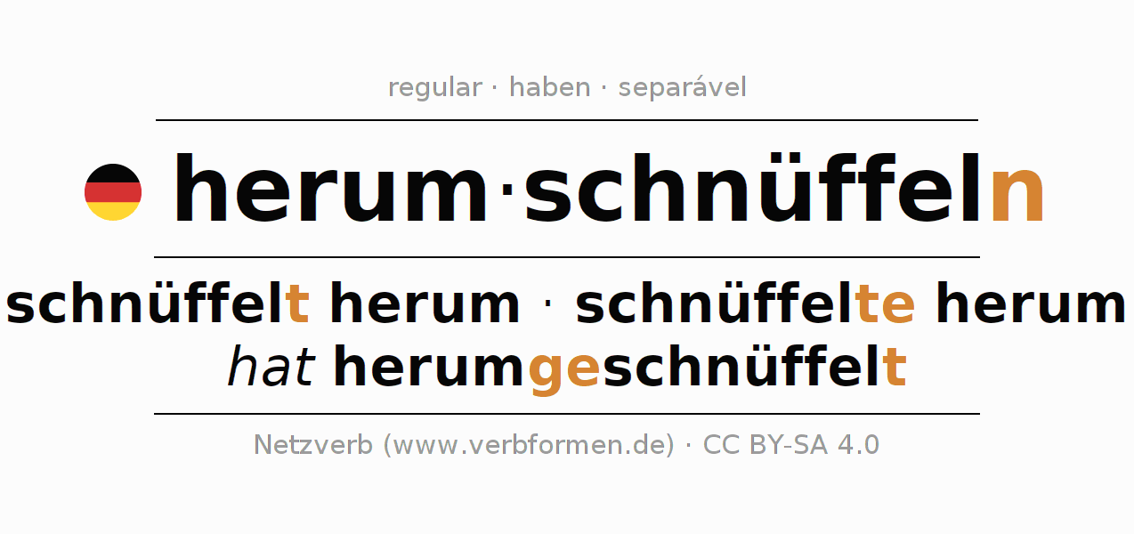 A Tabela de verbo resume todas as formas verbais do verbo herumschnüffeln em uma só tabela.