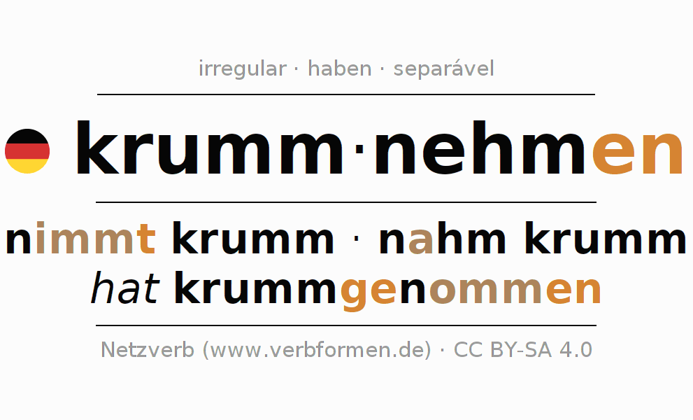 A Tabela de verbo resume todas as formas verbais do verbo krummnehmen em uma só tabela.