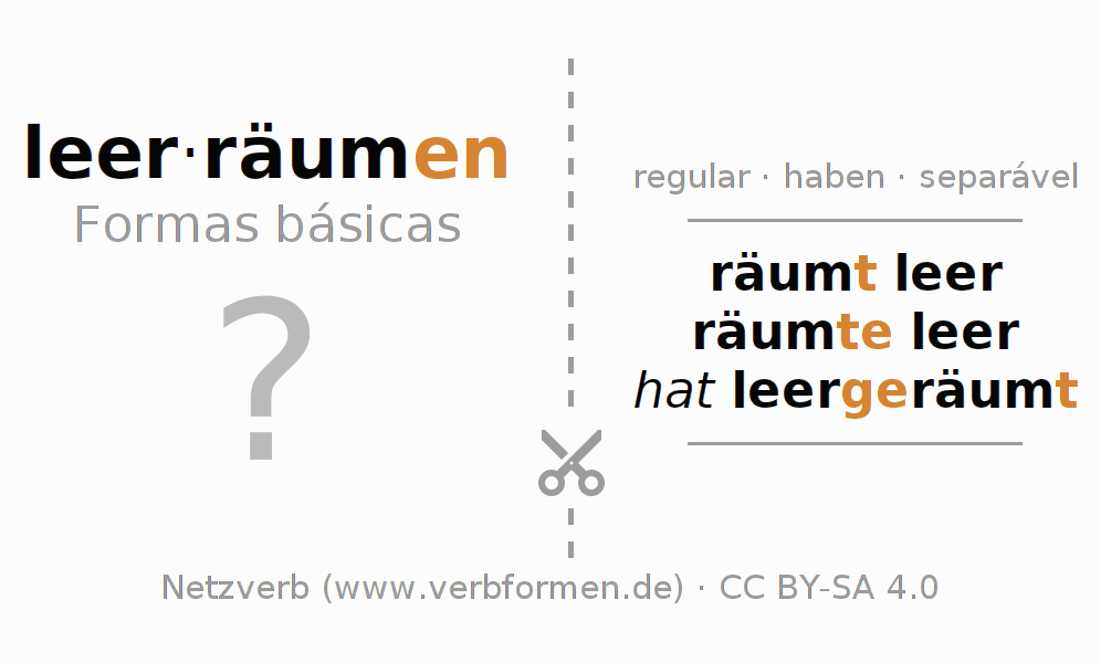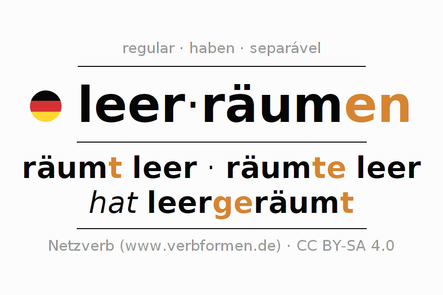 A Tabela de verbo resume todas as formas verbais do verbo leerräumen em uma só tabela.