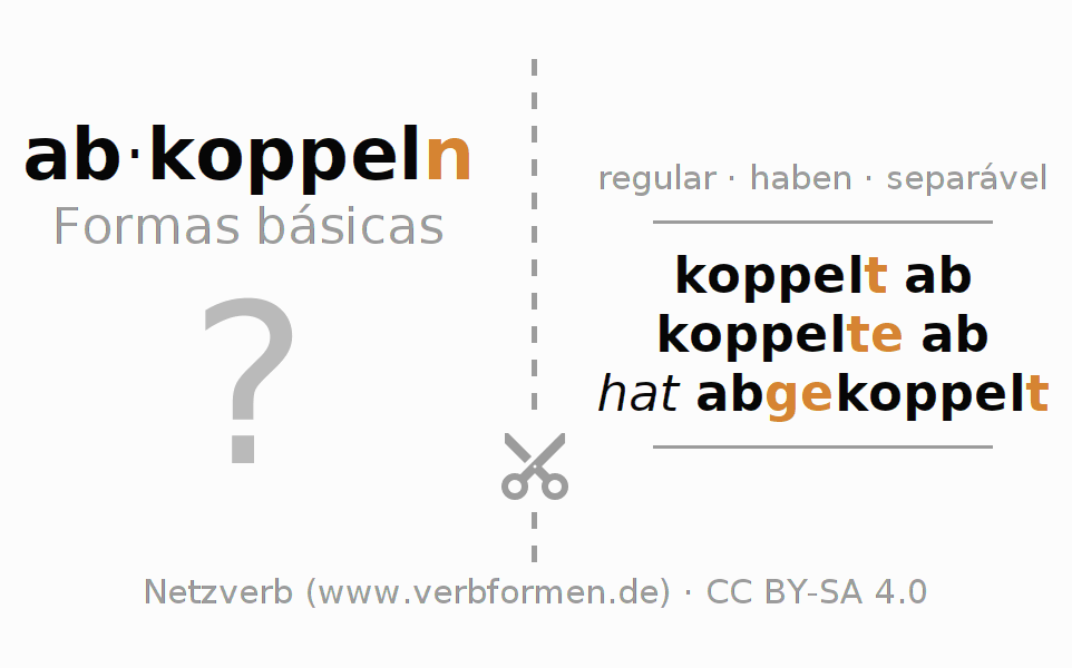 Instruções: Imprimir e recortar os flashcards do verbo abkoppeln. Em seguida, misture os diversos cartões. Retire um deles. As informações devem ser memorizadas. Para verificar a resposta utilize as informações nas fichas de aprendizagem.