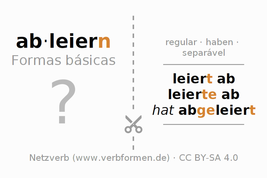 Instruções: Imprimir e recortar os flashcards do verbo ableiern. Em seguida, misture os diversos cartões. Retire um deles. As informações devem ser memorizadas. Para verificar a resposta utilize as informações nas fichas de aprendizagem.